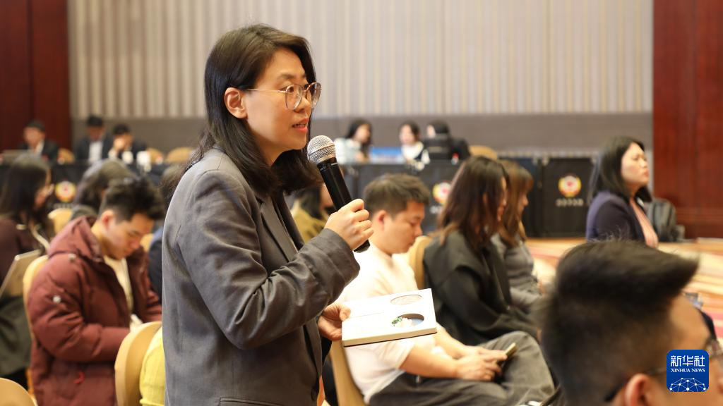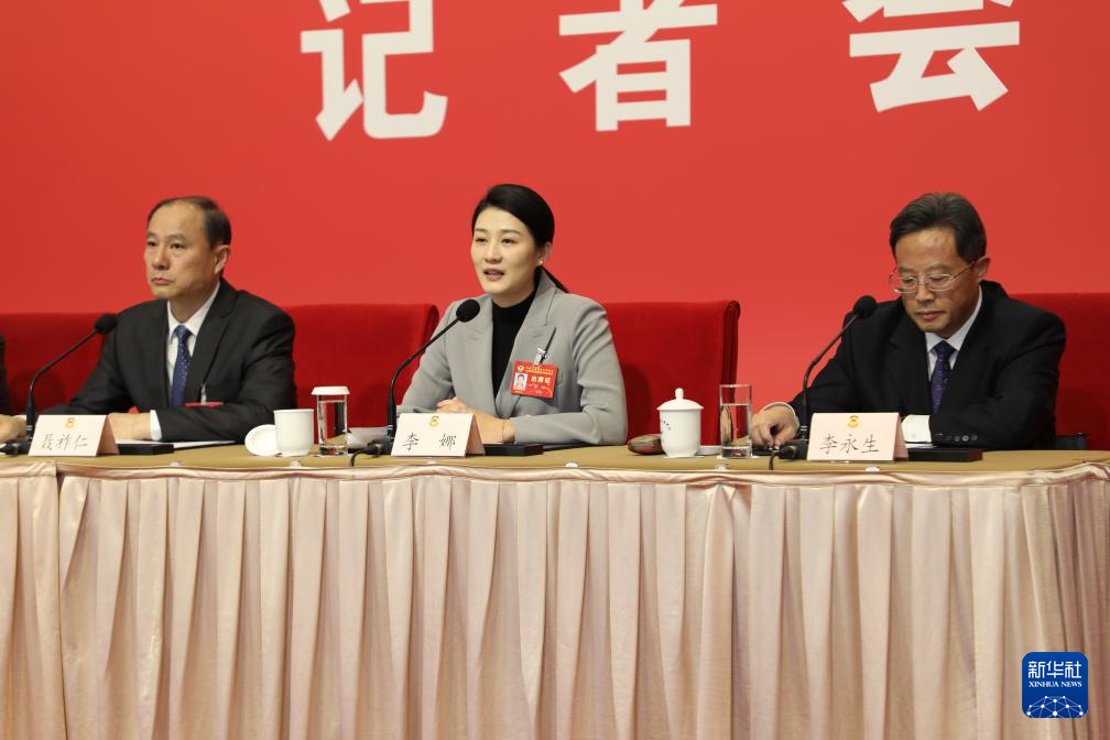 图为李娜委员回答记者提问。(新华社记者鲍赫 摄)