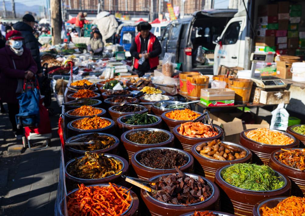 在北京市昌平区沙河大集,商户在售卖酱菜(2月8日摄)。