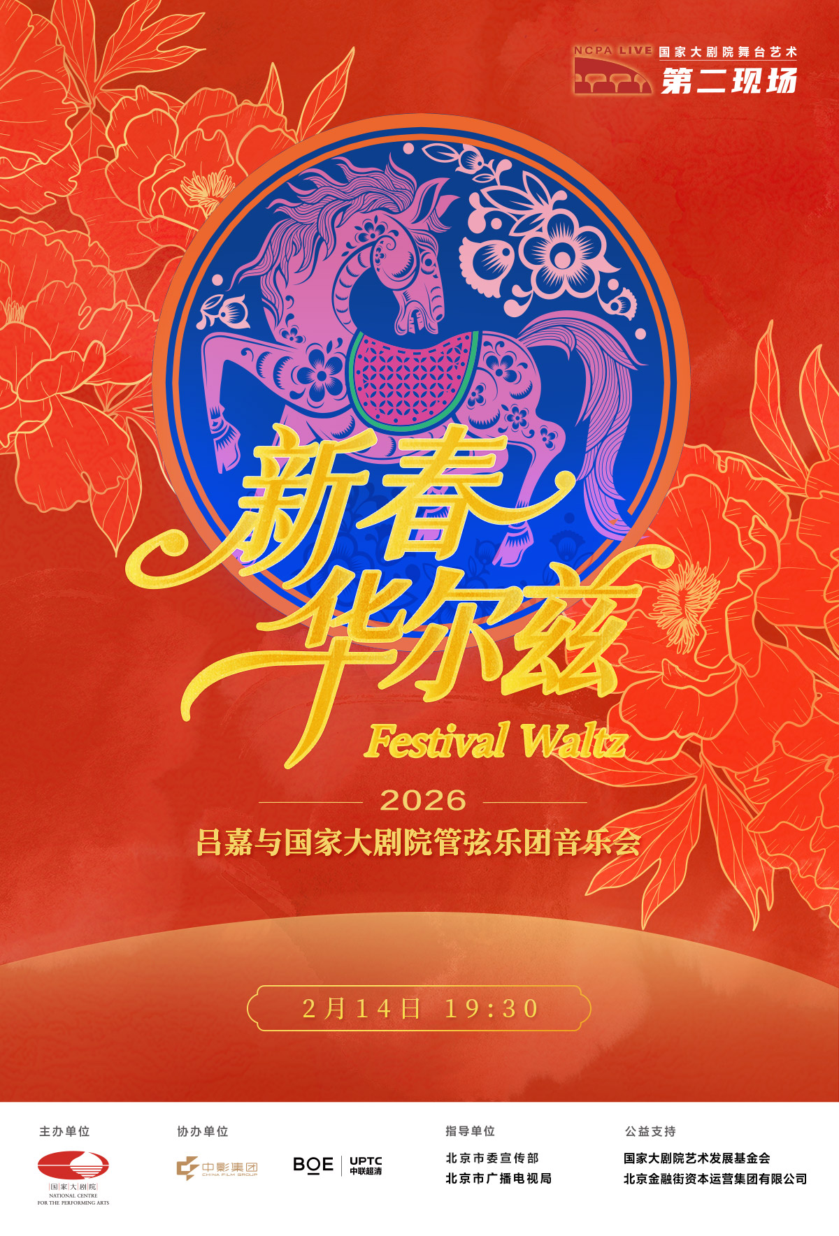 2月14日19:30,备受观众期待的国家大剧院舞台艺术“第二现场”将在丙午马年新春之际再度归来。届时,“新春华尔兹”吕嘉与国家大剧院管弦乐团音乐会的现场演出实况,将以京津冀地区为核心,同步直播至全国二十余家剧院及影院银幕,为广大市民和全国观众呈上一道兼具高雅与喜庆的年节文化盛宴。
