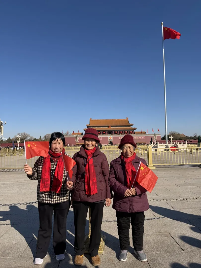 郁章宝在临沂市莒南县工作。平日里看到同事朋友外出旅游,他总会想起自己在农村老家的母亲。“我妈这一辈子,把所有精力都扑在儿女身上,儿女成家了,又接着操劳孙辈,很少有机会出门看看。”他萌生了一个念头,带妈妈出去走走。“我想,不只是我妈妈需要这种不曾有过的体验,我们这一代人,都有责任带妈妈去看看外面的世界。”2025年国庆节后,郁章宝就开始盘算下一个假期——春节,带妈妈出去玩。可对妈妈那辈人来说,春节必须守着儿女、在老家过才算圆满。郁章宝便试着和妈妈商量,“您过了年就79岁了,要是再不出门,以后腿脚不利索了,就更难出去了。趁着现在,我带您多走走。”最终,儿子的诚意打动了她。为了不让妈妈有心理负担,他甚至没敢说实话,报了个“打了折扣”的出行费用。“我们一大家子人,气氛一直特别好。之前我的表姐去安徽,也带上我妈妈。这回我带妈妈旅游,当然也得带上亲戚们。”郁章宝怕妈妈出行孤单,想带的亲人越来越多,加上自己,最后凑成了15口人。“我妈妈还担心家里养的兔子、猫、狗和鸡,好在我在青岛的叔叔说,他带家人回老家,给我们看园子,妈妈这才放了心。”选目的地时,北京毫无疑问是首选。“带妈妈出来,第一站必须是北京,北京不只是一个旅游的地方,更是一种信仰,一种情怀。”郁章宝知道,妈妈对长城、对天安门早已憧憬多年。“她不是来打卡的,是觉得我们过上了好日子,就该来北京看看,那是信仰的力量。”