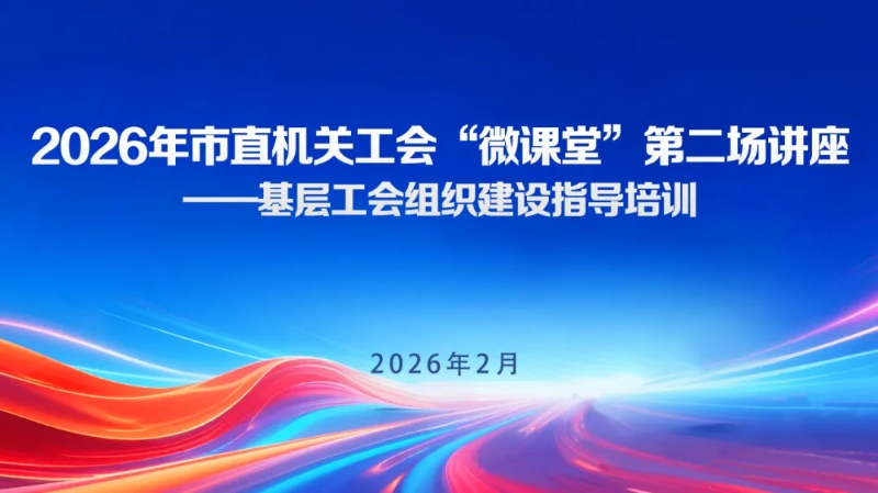 为进一步加强基层工会规范化、标准化建设,提升基层工会干部履职能力与业务水平,筑牢工会工作基层堡垒,2月5日下午,2026年市直机关工会“微课堂”第二场讲座开讲。本场讲座由市直机关工会干部范仁忠主讲,围绕基层工会组织换届和届中调整的基本流程进行详细指导培训,同时对常见问题作了交流和解答。讲座设置线下主会场和线上分会场,市直机关各直管工会副主席和工会组织建设工作人员2000余人参加。