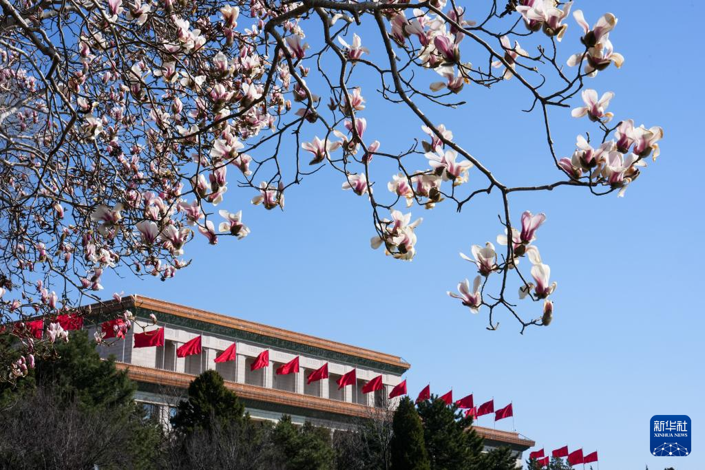 国家大剧院旁玉兰花盛开(3月9日摄)。