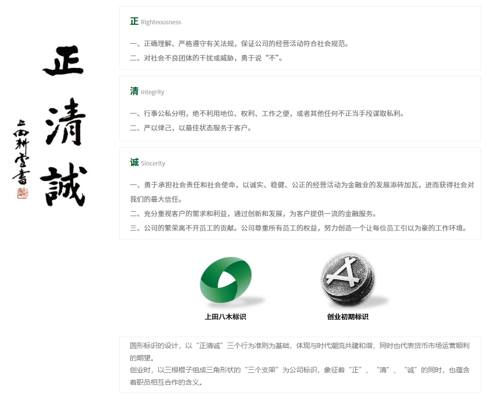 上田八木以“正清诚”为员工的行为准则,这是我们服务客户、贡献社会的基础