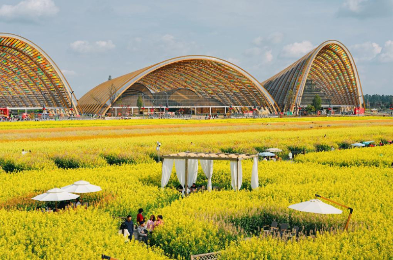“花田+”衍生出的消费新场景,让游客不仅饱了眼福,更愿意“停下来”“坐下来”。天府农业博览园花田火锅店主理人陈娟笑着说:“周末座无虚席,预约得提前一周。”数据显示,春节至今,81万人次涌入这个园区,带来近3000万元的收入。