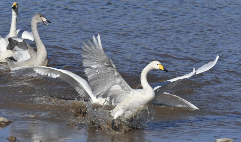 2025年11月20日,天鹅在密云水库流域的清水河中嬉戏。新华社记者 李欣 摄