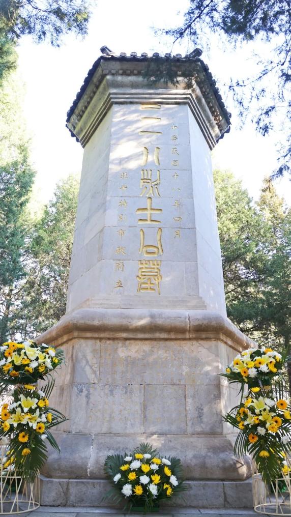圆明园的烈士墓碑前