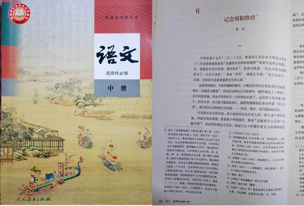 《记念刘和珍君》选入人教版普通高中语文教科书。新华社发(于湉湉 摄)