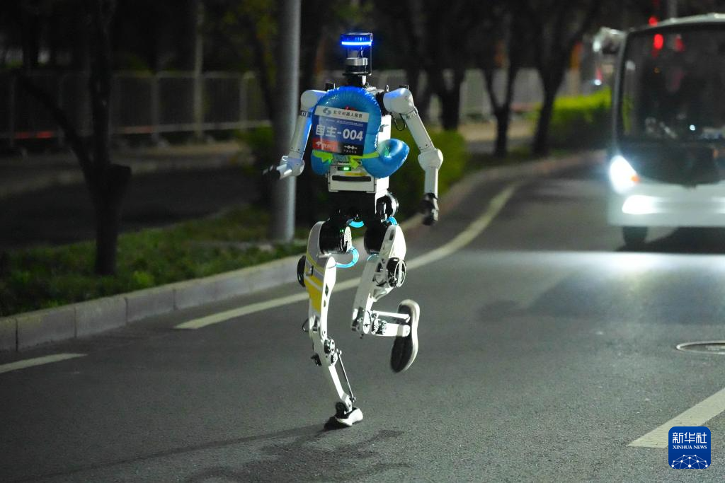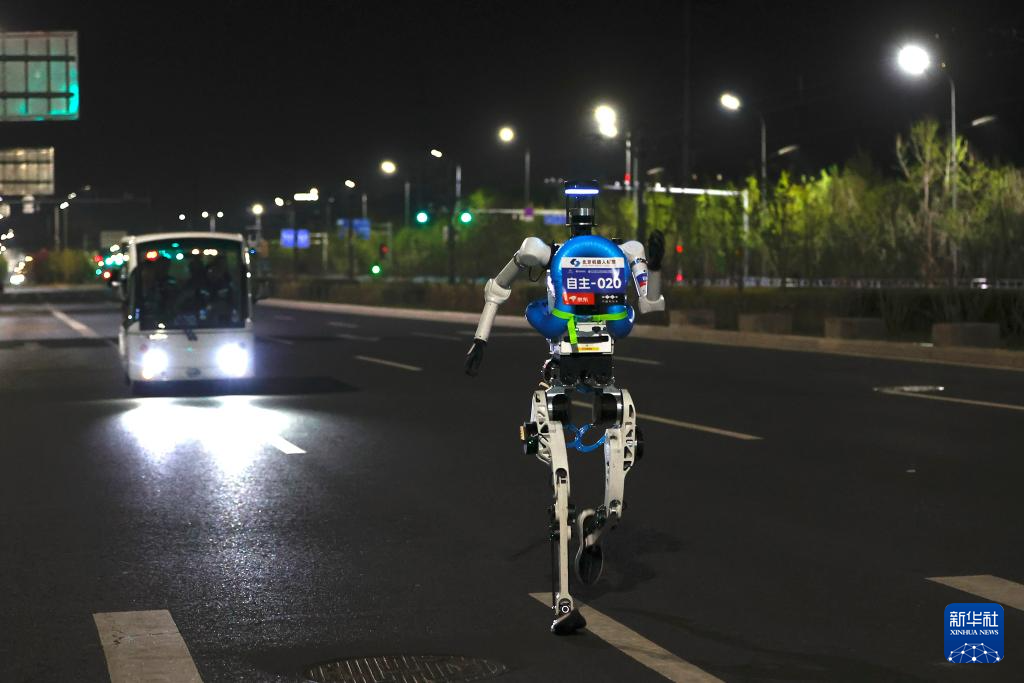 4月11日晚,一台机器人在测试活动中奔跑。 新华社记者 鞠焕宗 摄