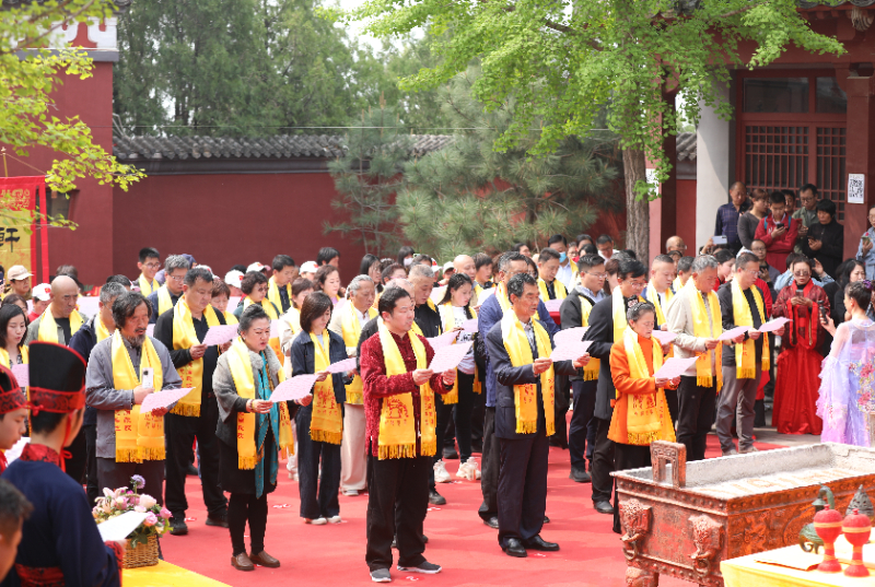 祈福仪式在轩辕庙主殿前举行。来自山东庄中学的50名学生以清澈童声唱响《黄帝颂》。伴随鼓乐奏鸣,祈福典礼正式开启。现场通过诵读祈愿文、敬献鲜花、乐舞表演等形式,以当代表达追思轩辕黄帝的功绩,弘扬中华文明的根脉精神。乐舞《天耀中华》在春风中徐徐展开,礼乐交融、天地和合,祈福典礼圆满礼成。