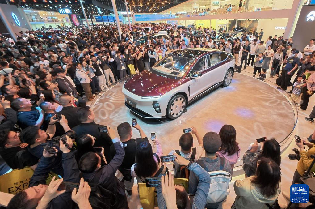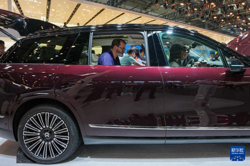 4月26日,在2026北京车展上,参观者在蔚来汽车公司展台体验新款车型。