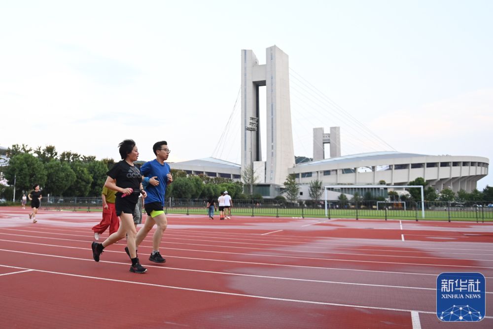 ↑市民在黄龙体育中心室外田径场跑步(2023年8月21日摄)。在杭州亚运会期间,这里将是运动员热身场地。