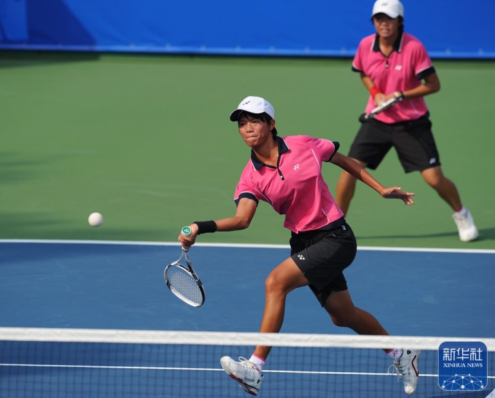 ↑中国台北队选手朱芸萱在广州亚运会软式网球女子团体决赛中(2010年11月14日摄)。