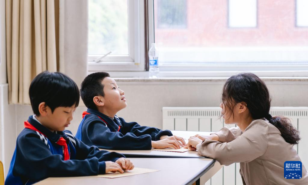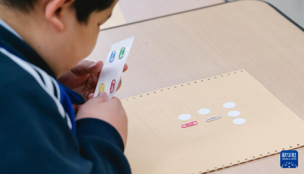4月29日,在北京市盲人学校,盲童在完成课堂作业《月球守护者发现报告》。该作业让盲童根据内容进行判断,正确就贴圆圈,错误就贴曲别针。
