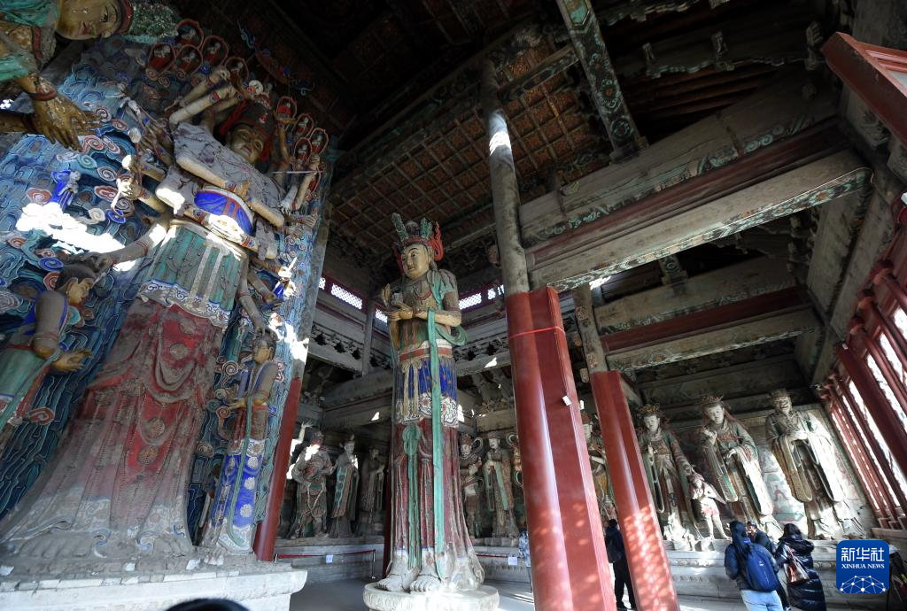 大慧寺始建于明正德八年(1513)年,现仅存大悲宝殿一座,是典型的明代大木结构,坐北朝南,面阔五间,进深三间,高约21米,重檐庑殿顶。殿内存有工艺精湛的彩塑和壁画,具有极高的历史、艺术与科技价值。
