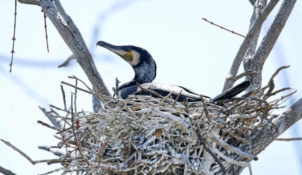 鸬鹚在密云水库鸟岛上繁育后代(4月2日摄)。