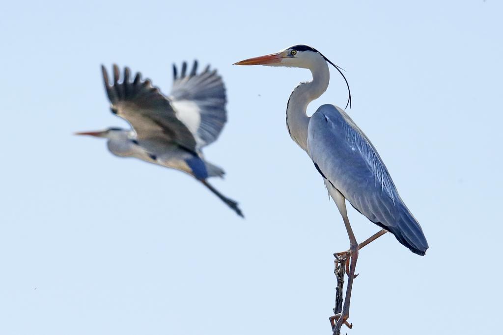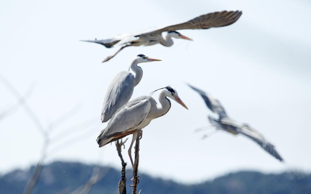苍鹭在密云水库鸟岛上栖息(4月2日摄)。