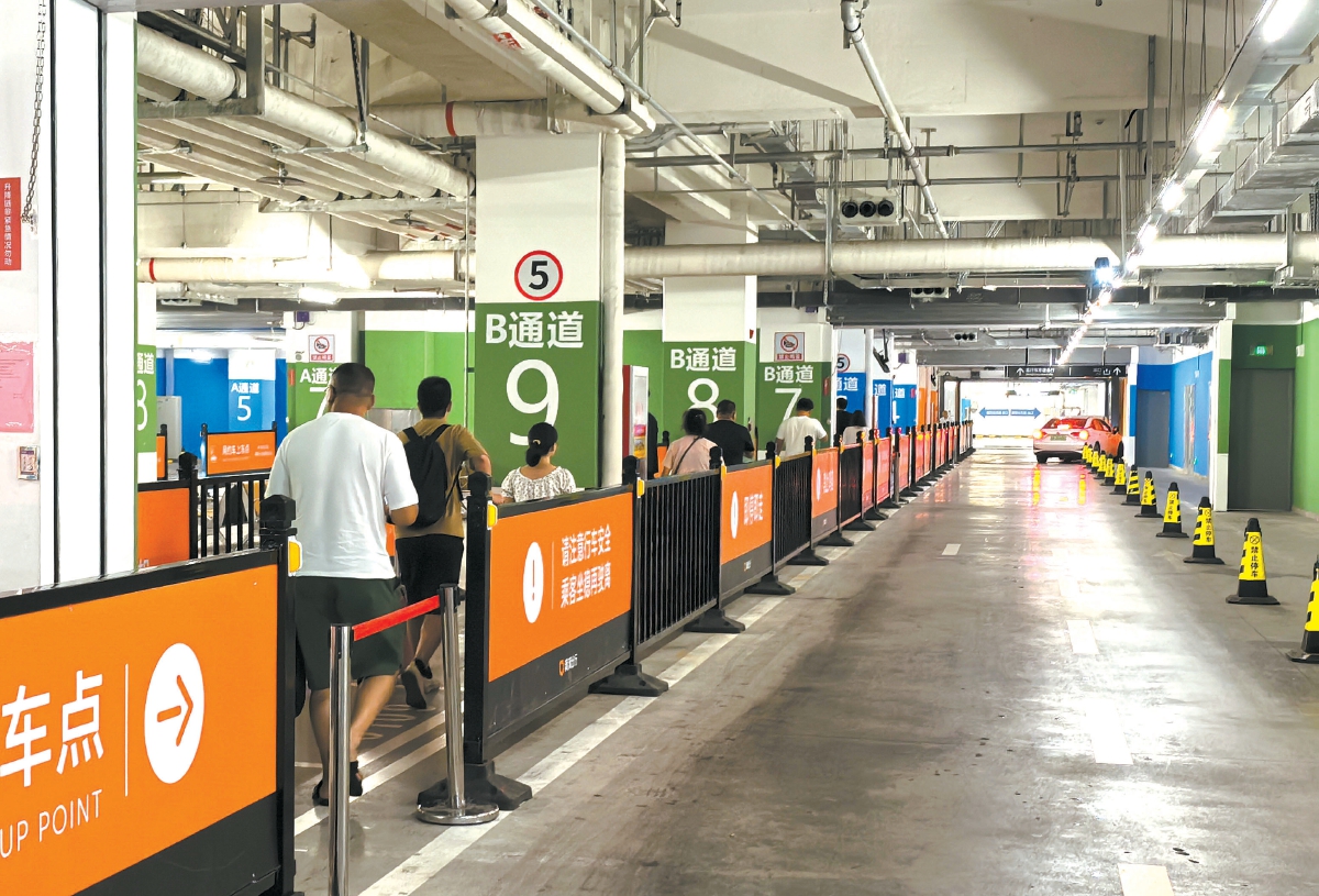 “我们在网约车服务区内,划分出123区(橙)、456区(蓝)、789区(绿)三大专属候车区,乘客只需在手机订单界面确认分区代码,便能如精准导航般直达对应区域。司机接单后也能迅速定位乘客,极大压缩了无效沟通与寻路时间。暑运以来,这里网约车的流动效率提升30%。”曹明争说。