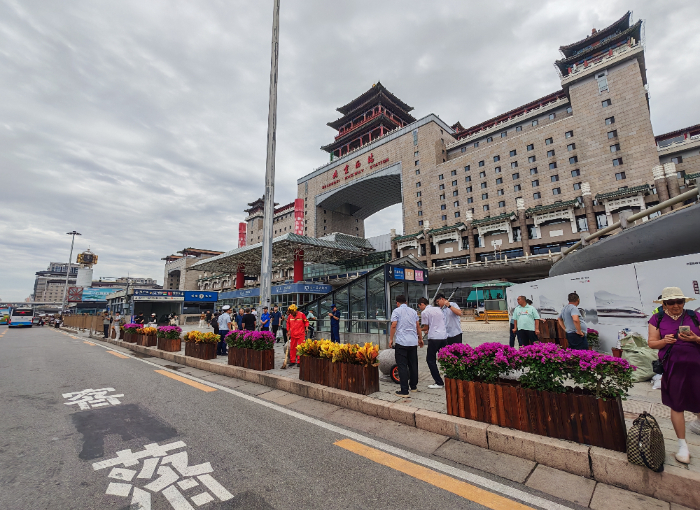 北京西站北广场围栏变花箱