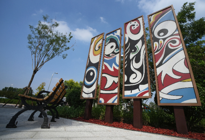 设置了长约80米的非遗彩绘墙,