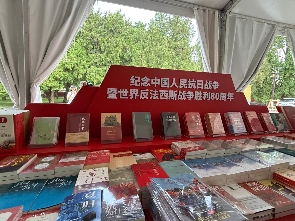 书市设置的纪念中国人民抗日战争暨世界反法西斯战争胜利80周年专台。新华网 李欣 摄