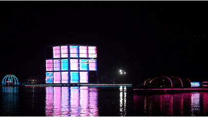 夜幕降临,北京亮马河上璀璨灯光将水面渲染成耀眼“星河”,2025北京朝阳国际灯光消费季(简称“灯光消费季”)10月11日晚在北京朝阳公园贝壳剧场开启点亮仪式,水上“魔方”、“飞跃蓝湖”“孤独星球”等多元灯光技术与互动装置,为灯光消费季注入满满科技感。