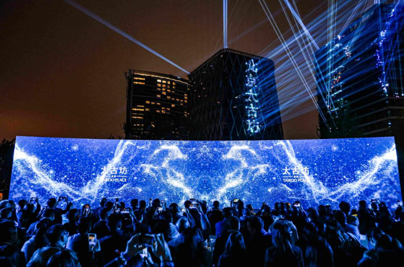 图为10月16日晚举行的北京太古坊夜间灯光秀。(主办方供图)