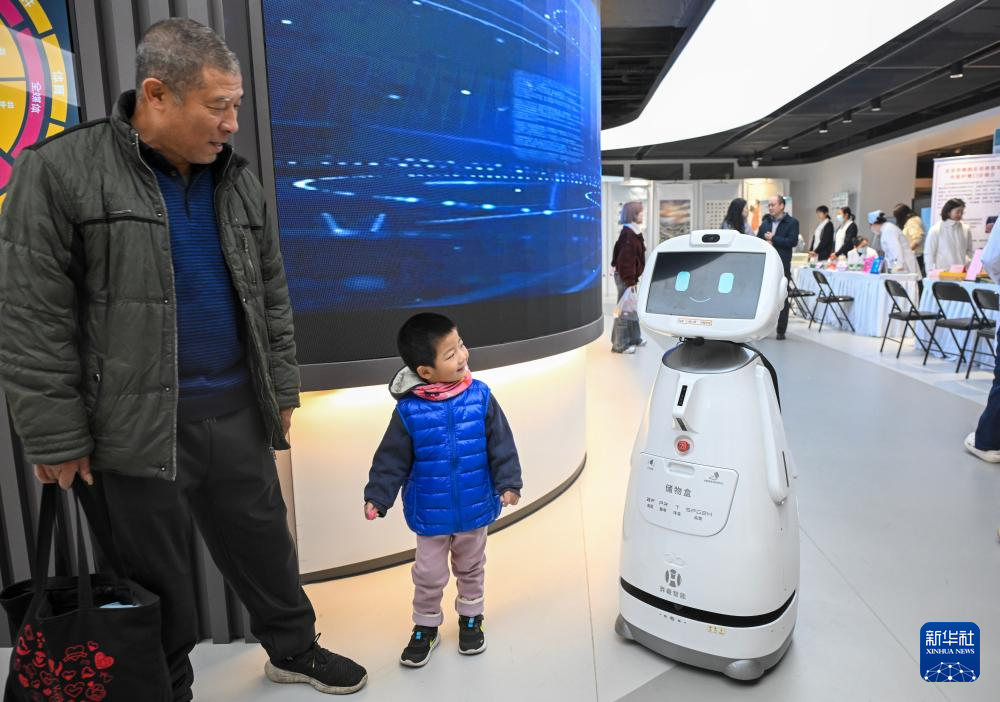 10月25日,市民在“敬老月”主题活动的养老消费季展厅参观一款养老服务机器人。