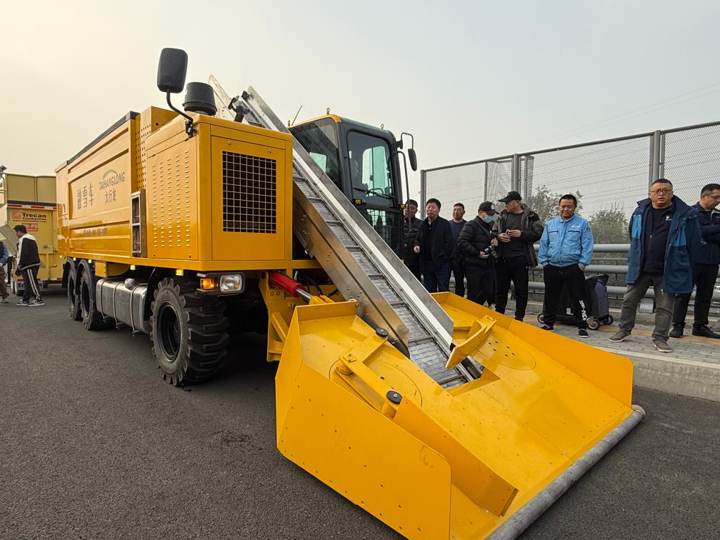 据介绍,移动融雪车等新设备是今年引进的“得力助手”。王鹏介绍,常规情况下,路面积雪是先暂存路侧,雪后再进行清运或融化。移动融雪车可在行进过程中通过车前铲斗内的两只机械臂将路面积雪传送至车后方的融雪箱,并将其迅速融化为清水,从路面的雨、污水井进行排放,有效解决积雪处理问题。