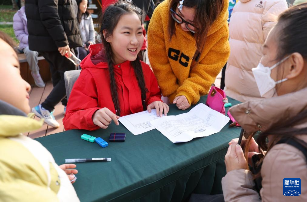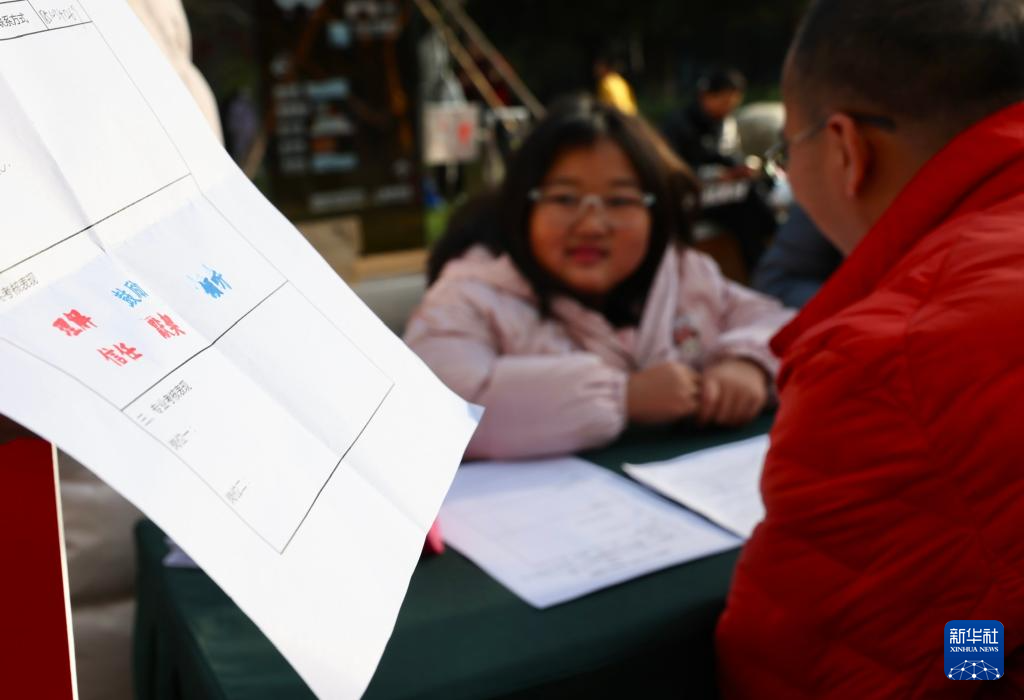 11月8日,一名小朋友在为自己的家长“面试”。