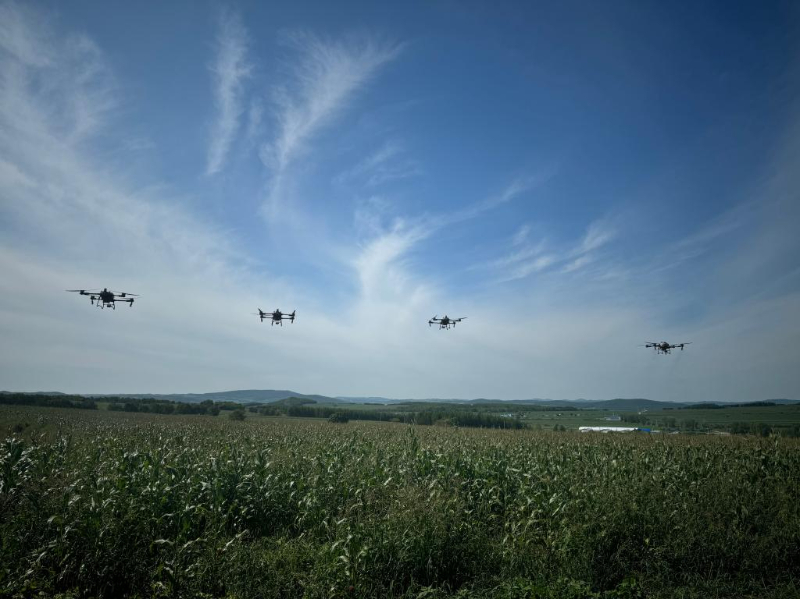 内蒙古鄂伦春自治旗民族职业高中无人机专业学生进行无人机田间植保工作。(受访者供图)