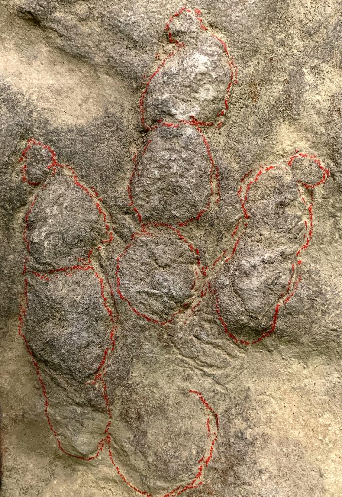 图为石板上的兽脚类恐龙足迹。(受访者供图)