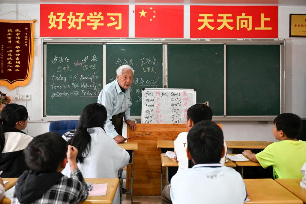 叶连平在安徽和县卜陈村“留守未成年人之家”给学生上课(2025年4月9日摄)。新华社记者 任鹏飞 摄