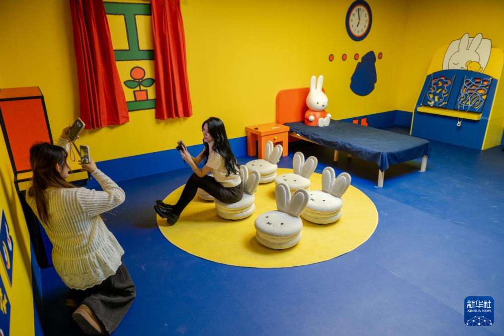 12月24日,在北京时代美术馆,观众在展览《米菲,全世界的好朋友》上体验互动项目。