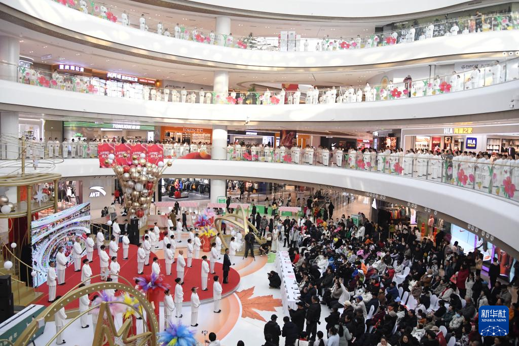 12月27日,市民参与活动中的千人八段锦展演环节。