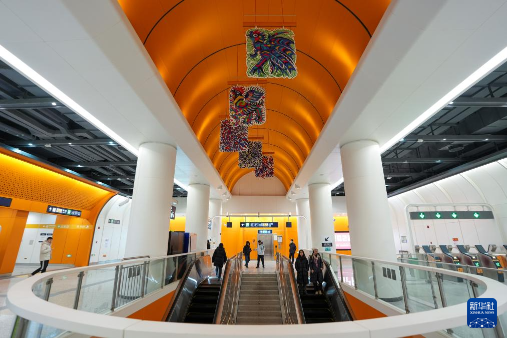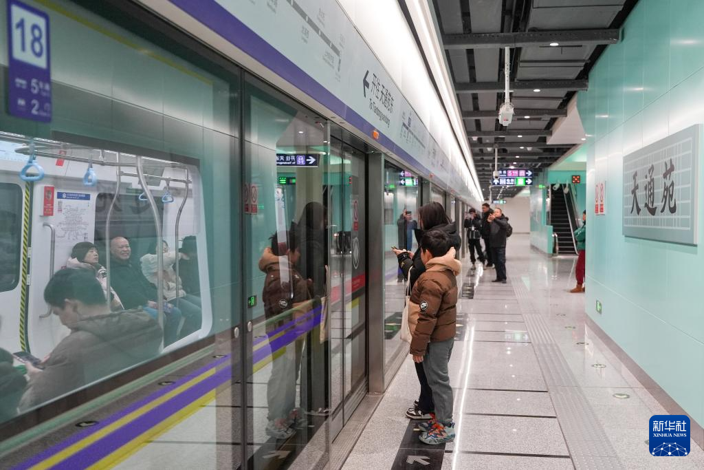 12月27日,乘客在北京地铁18号线(马连洼—天通苑东)的天通苑东站拍照。