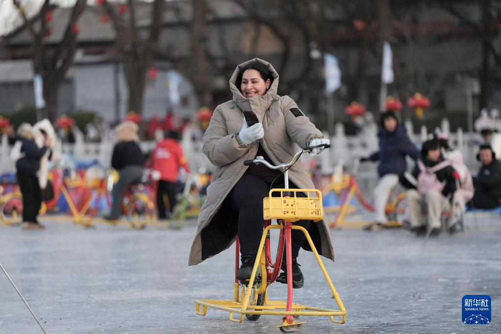 1月10日,游客在什刹海前海冰场上游玩。
