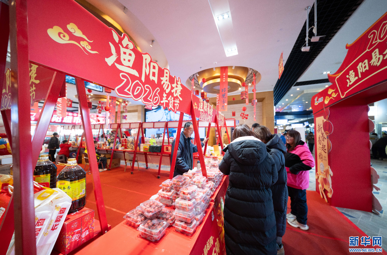 图为北京渔阳国际滑雪场里的年货节。新华网 毕尚宏 摄