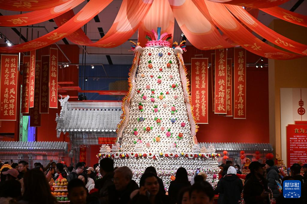 这是2月15日在“过年——丙午春节系列主题展”上拍摄的陕西非遗代表性项目澄城面花作品“大鼓枣山”。