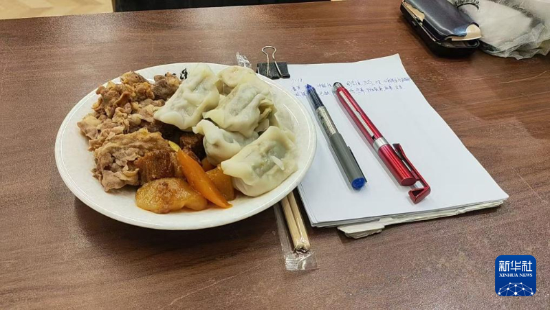 2月16日,除夕夜,宣南书店(法源寺店)为方新美送上的饭。新华社发
