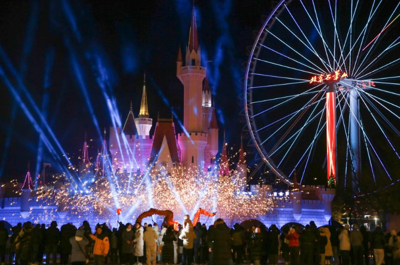 3月3日正值元宵佳节,北京石景山游乐园内彩灯熠熠、人流如织。围绕“灯火满园贺新岁 非遗百戏闹新春”这一主题,园方为市民游客呈现了一场别具韵味的团圆“盛宴”。