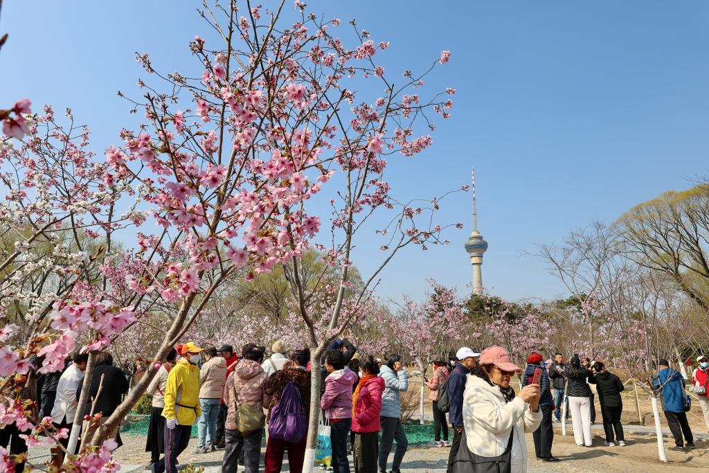 近日,北京玉渊潭公园早樱绽放,娇艳的樱花清香四溢,引得游客纷至沓来,乐享美好春光。