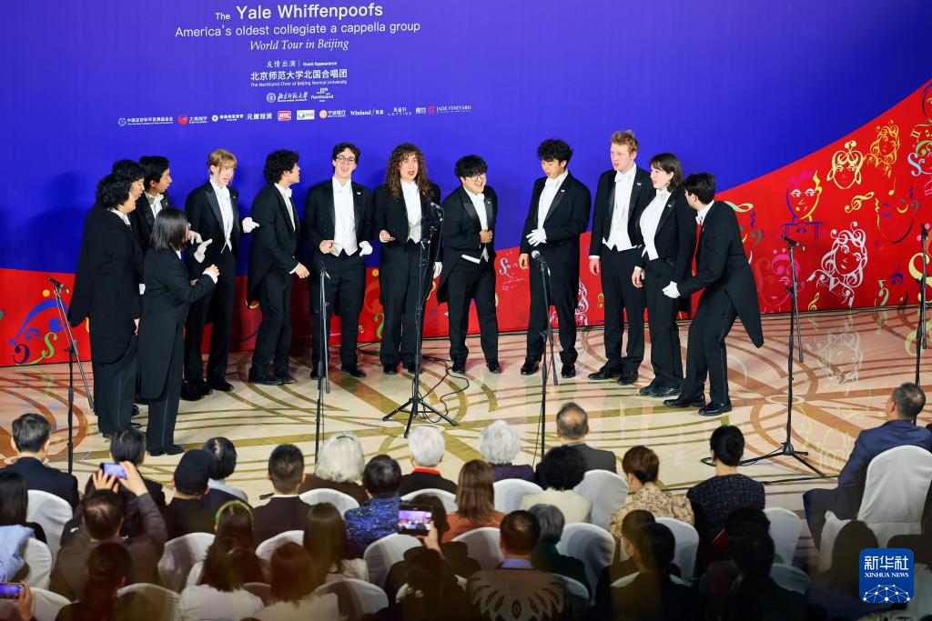 3月31日,美国耶鲁大学威芬普夫斯阿卡贝拉合唱团在北京开展文化交流活动,现场演绎多首经典歌曲,以音乐为纽带,传递友谊。